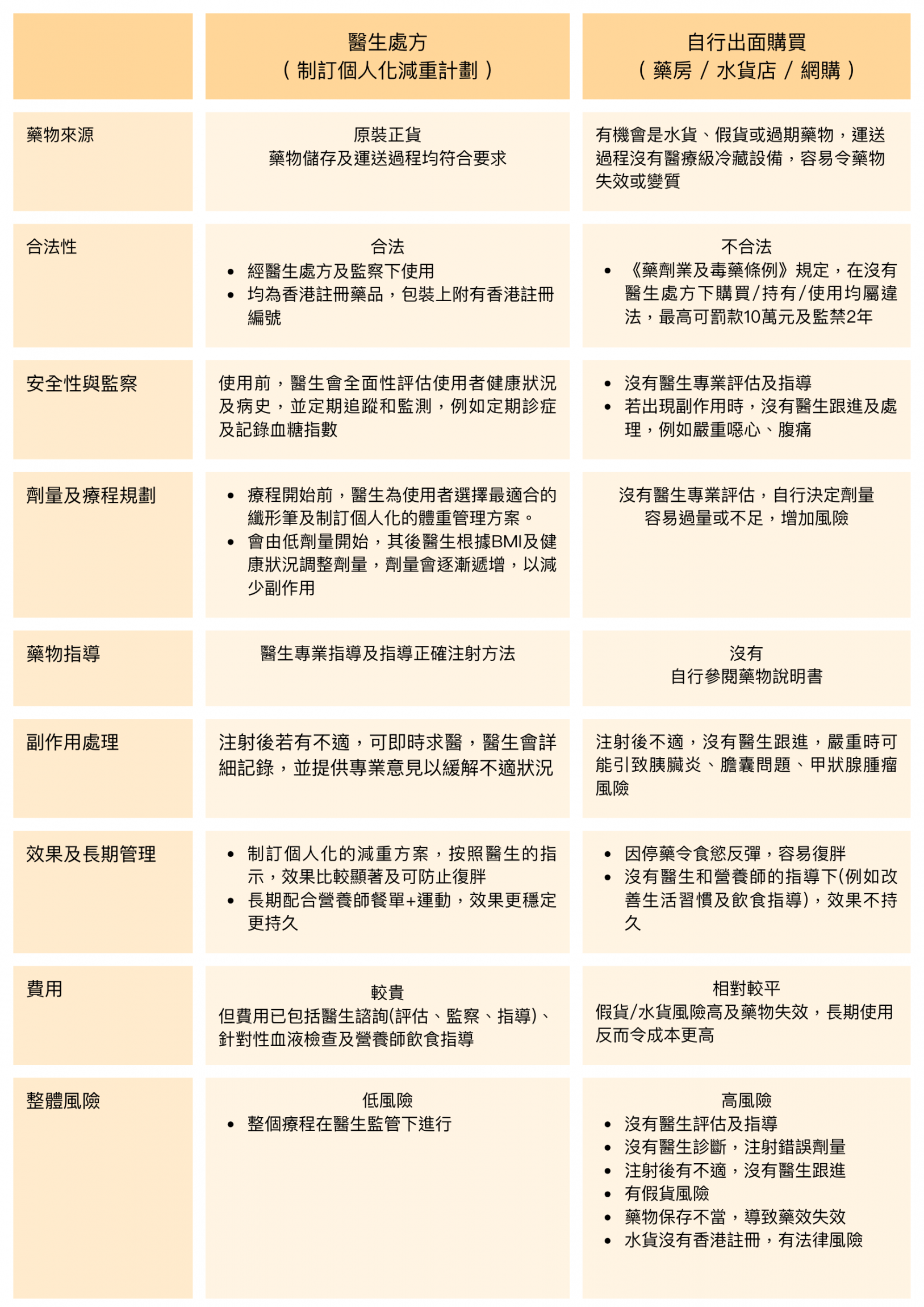 總括以上比較,我們推薦由醫生處方及制定「個人化體重管理計劃」。